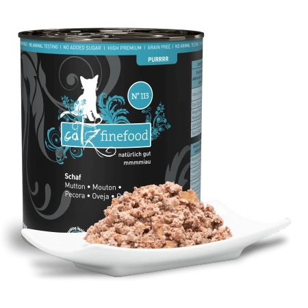 - Pełnoporcjowa karma mokra Catz finefood Purrrr No. 113 stworzona jest z soczystej baraniny, rosołu oraz oleju z czarnuszki.
