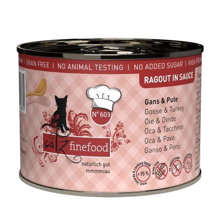 Catz Finefood Ragout No 603- gęś z indykiem z brokułami i gruszką 180g mokra karma dla kota.
