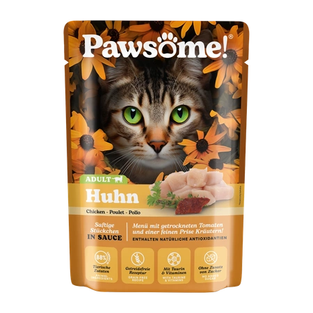 Nasza mokra karma Pawsome to wyjątkowe połączenie smaku i wartości odżywczych. Każdy posiłek to nowa przygoda pełna energii dla Twojego kota. Pozwól mu delektować się pysznymi kawałkami mięsa w sosie, które dostarczą wszystkich niezbędnych składników odżywczych dla zdrowia i witalności.