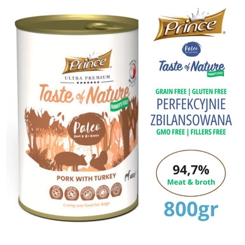 Prince Farmer wieprzowina & indyk 800 gr mokra karma dla psa bez kurczaka, bez zbóż