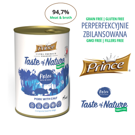 Prince Farmer's Feast mokra karma dla psa z 97% mięsa z rosołem. Wieprzowina & cielęcina 800 gr bez kurczaka, bez zbóż