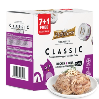 Princess Classic 70g Kurczak ,Tuńczyk, Ryż 7+1 mokra karma dla kota w galaretce